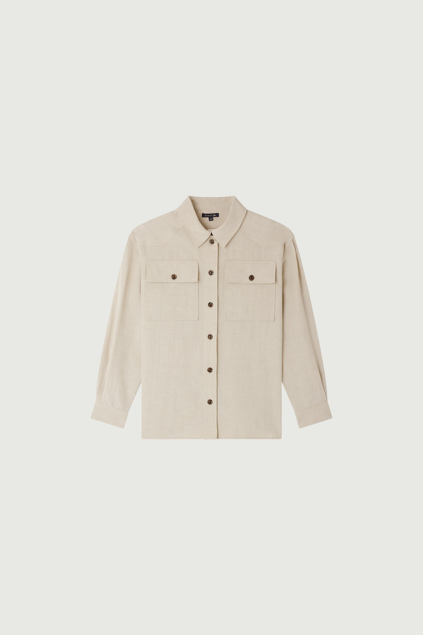 BRUXELLES is a shirt made from slubbed linen. Its straight and loose fit ensures maximum comfort. With a safari-inspired touch thanks to its two chest flap pockets, it is ideal for an effortlessly chic and relaxed look when paired with trousers in the same fabric.