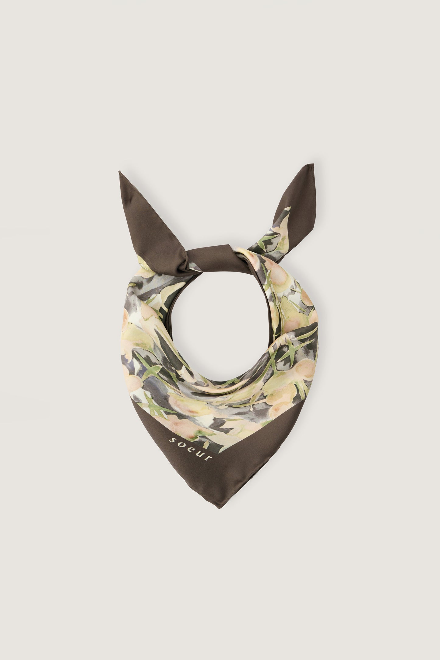 CAPUCINE is a printed silk scarf. A signature piece in the Soeur collection, our silk squares add a touch of elegance and whimsy to any outfit: tied around the neck, subtly peeking out from a shirt or sweater collar, knotted on a bag handle, or worn as a headscarf...