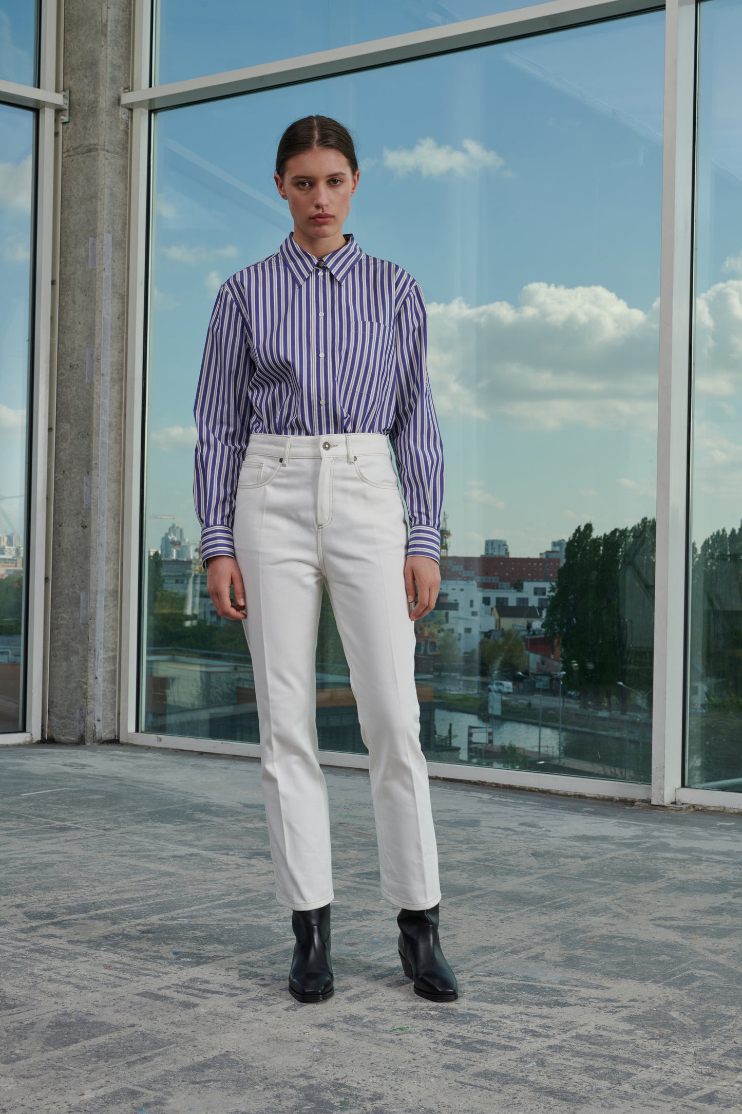 - Fitted trousers and flared bottom