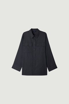 ALOUETTE is a high-waisted navy wool trouser with slightly rounded legs. Buttoned waistband and zip ensure perfect fit. Rectangular back patch pockets and side seam pockets. Virgin wool fabric guarantees impeccable drape.