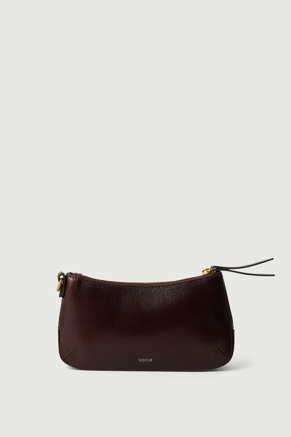 - Glossy Brown Leather Zipped Wallet