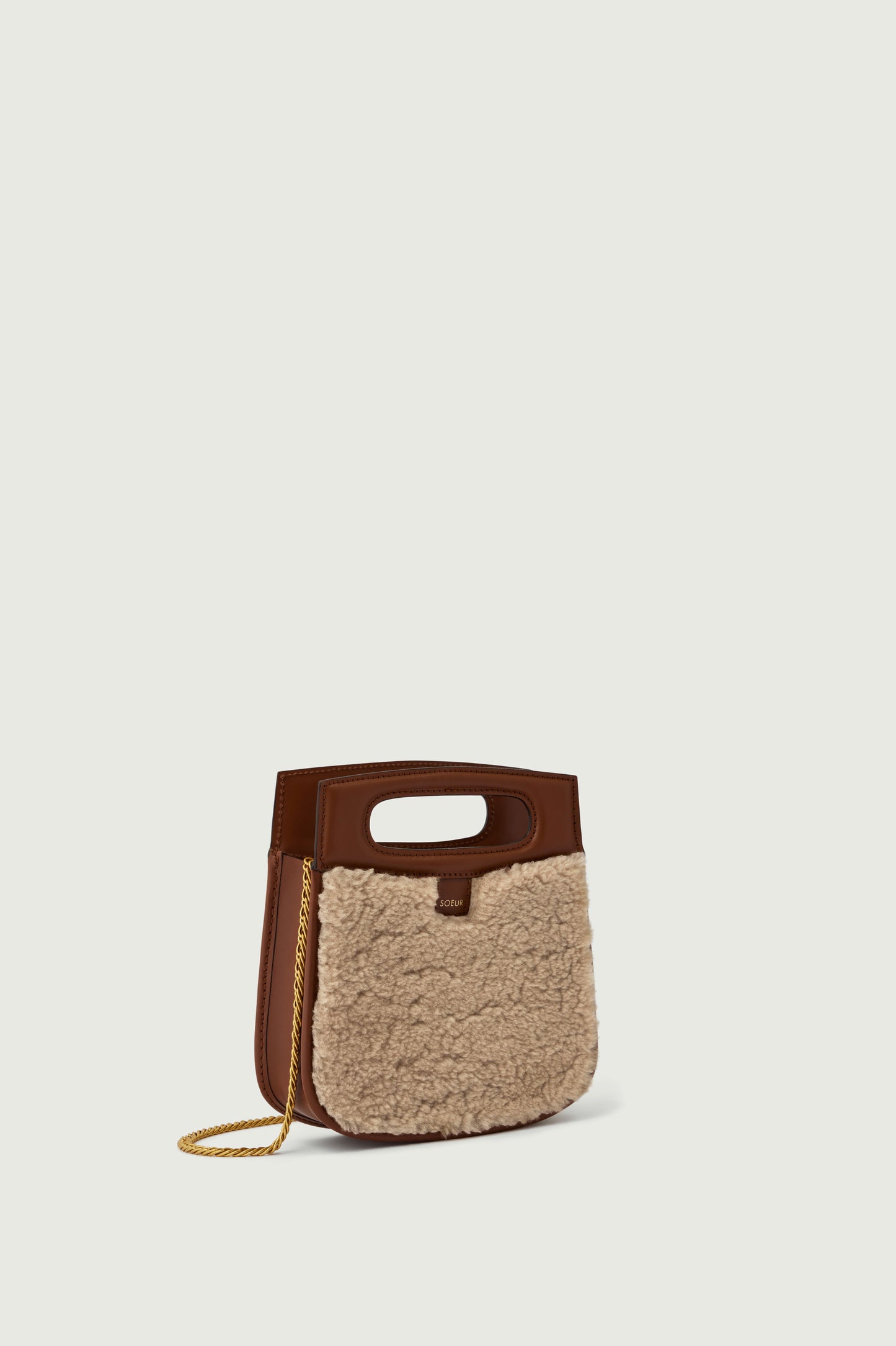 Small bag in natural smooth leather and sand shearling sand/hazelnut