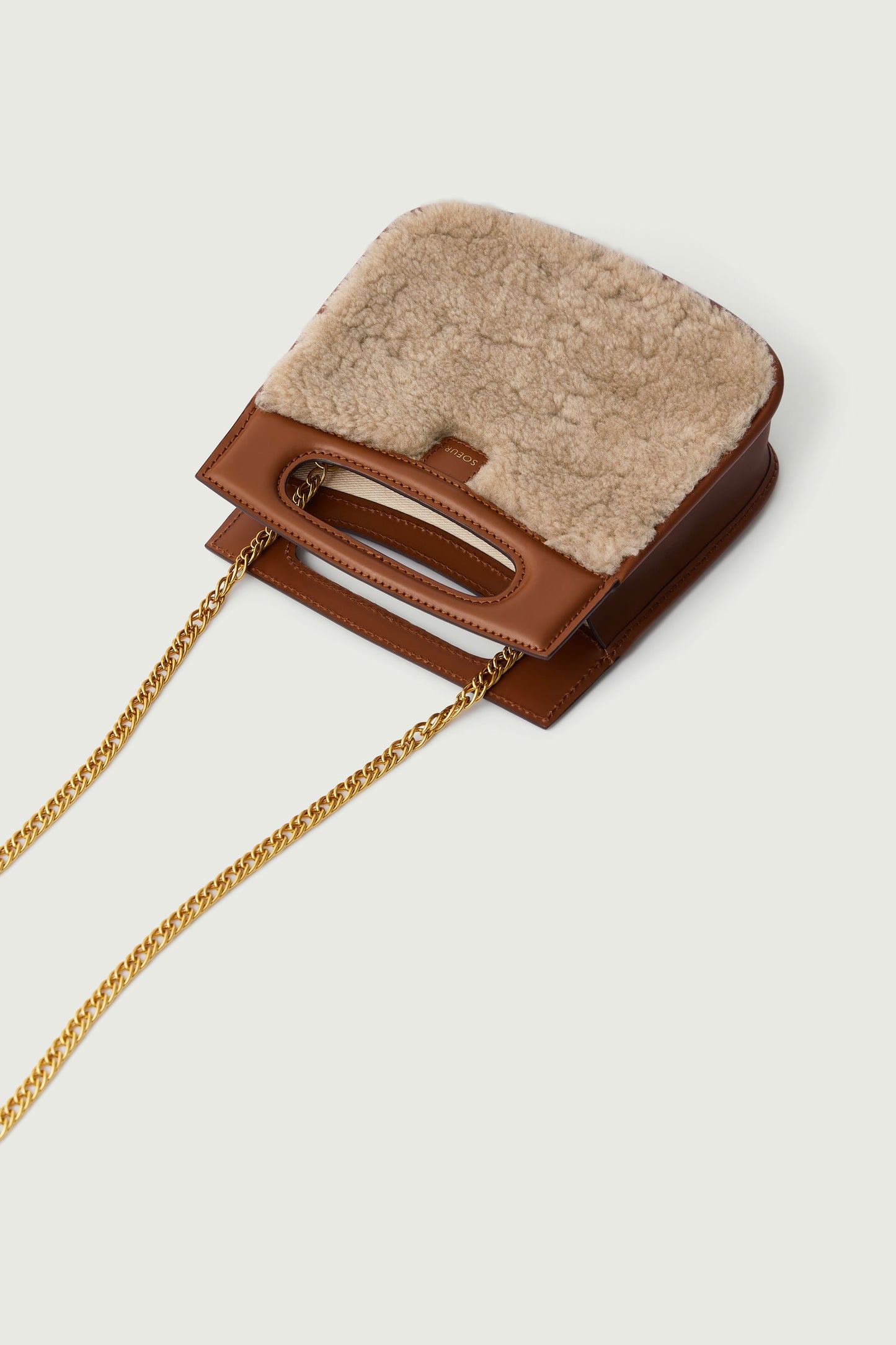 cheri mini bag Small bag in natural smooth leather and sand shearling