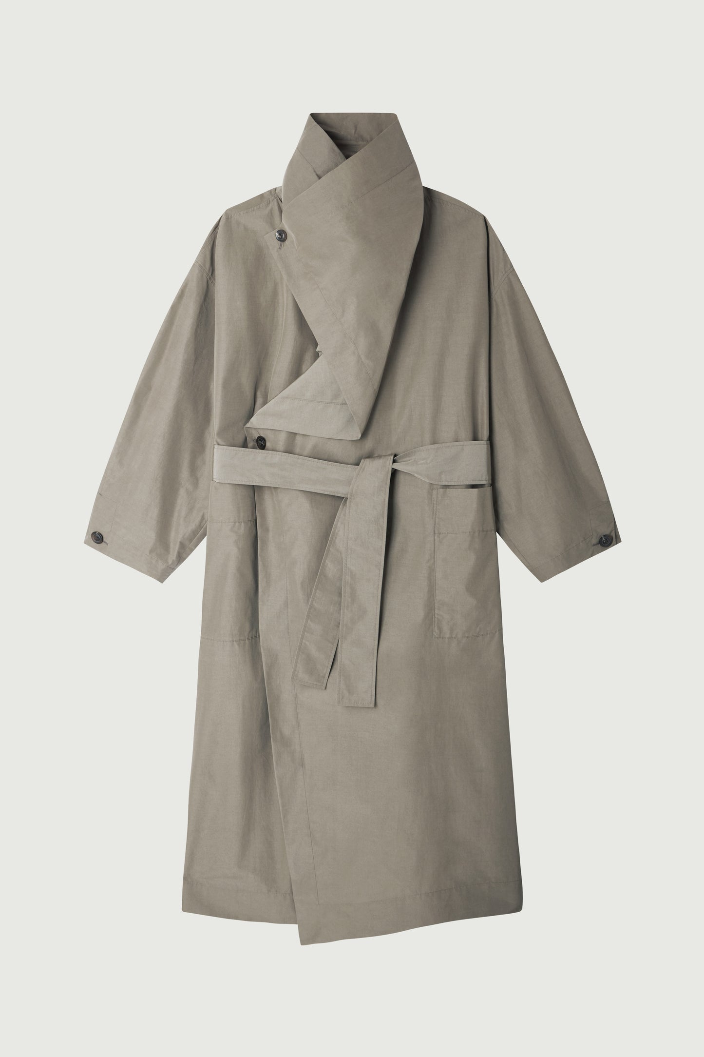 Long trench coat in technical cotton canvas grey